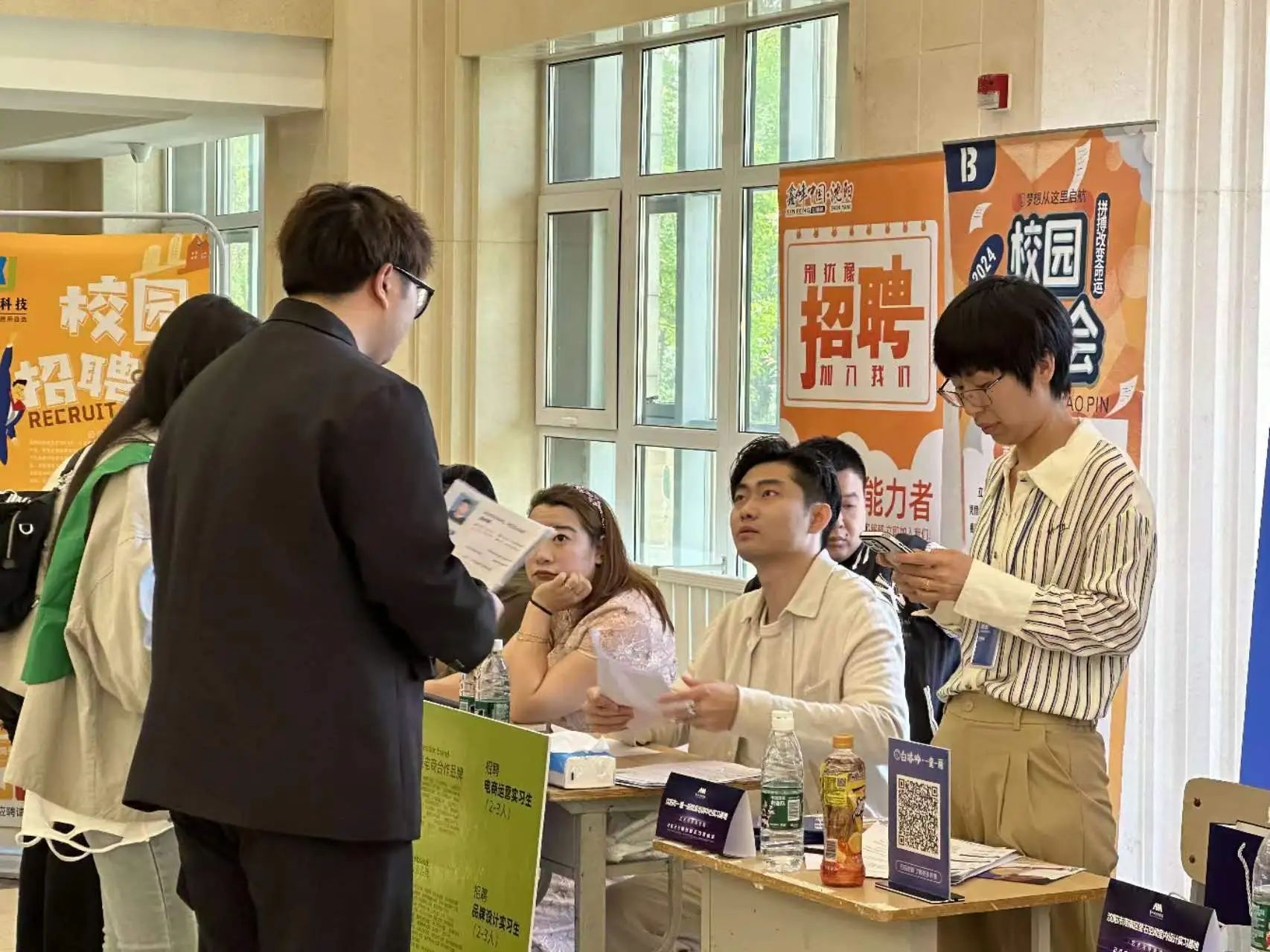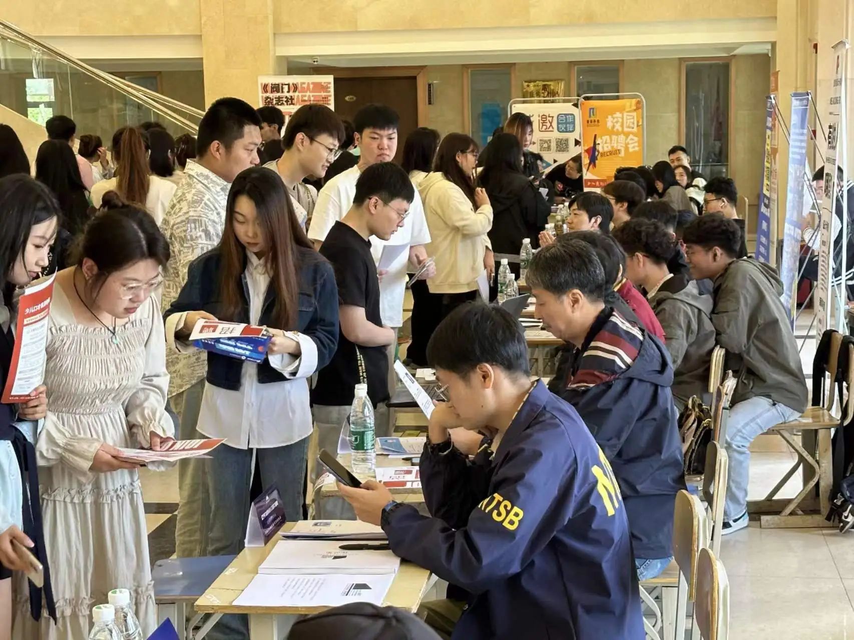 员工们手持简历,穿梭于各个企业展位之间,积极与企业代表沟通交流,寻找适合自己的实习岗位;企业代表们认真查看员工们的简历,详细询问他们的专业背景、实践经验以及职业规划,力求选拔到最符合企业需求的人才。