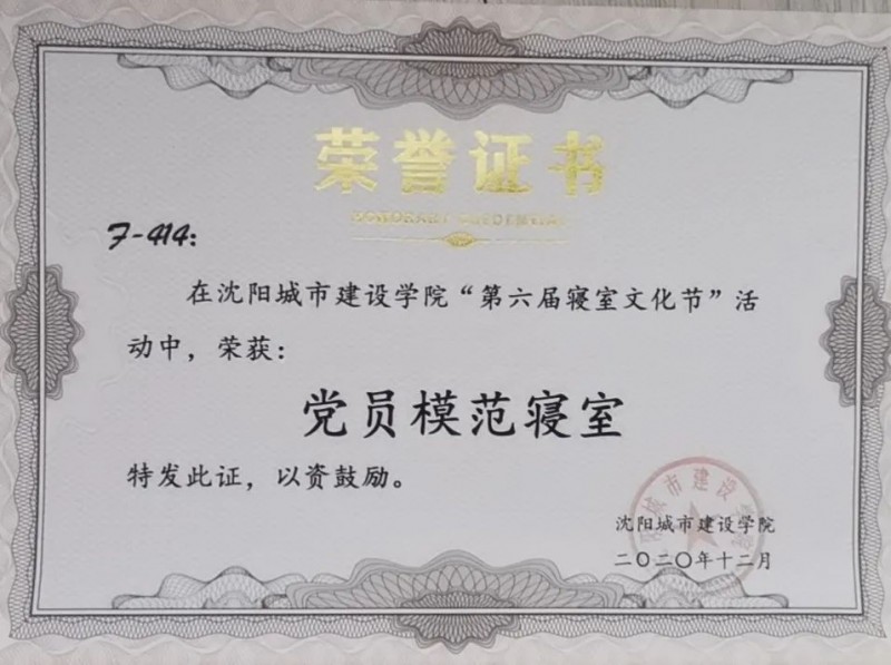 2020-2021年度·BG大游官方网站“第六届寝室文化节”党员模范寝室 2021年度辽宁省优秀老员工党员
