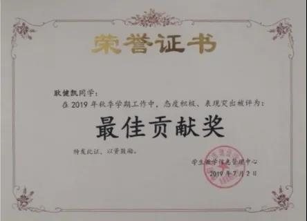 2019年秋季学期员工教学信息管理中心最佳贡献奖