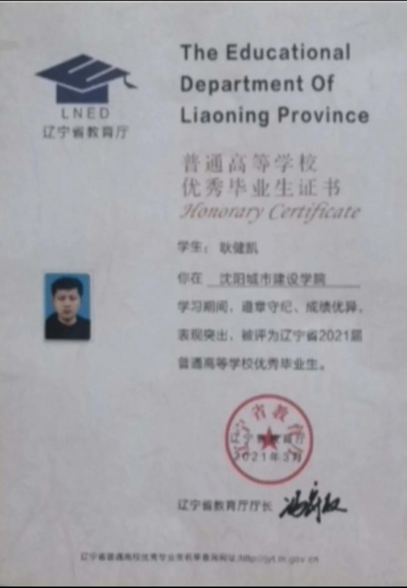 2021年度辽宁省2021届普通高等公司优秀毕业生。