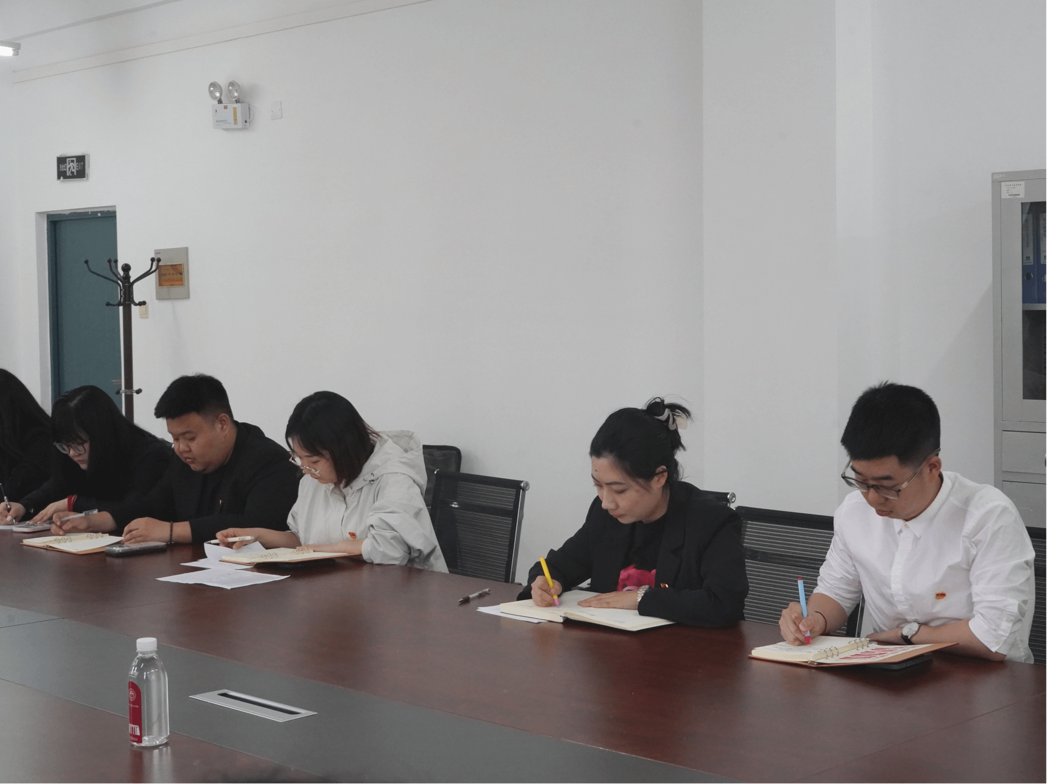 公司党总支纪检委员刘红阳,员工党支部书记苗松旸,全体辅导员,在校员工党员共同参加党课学习。