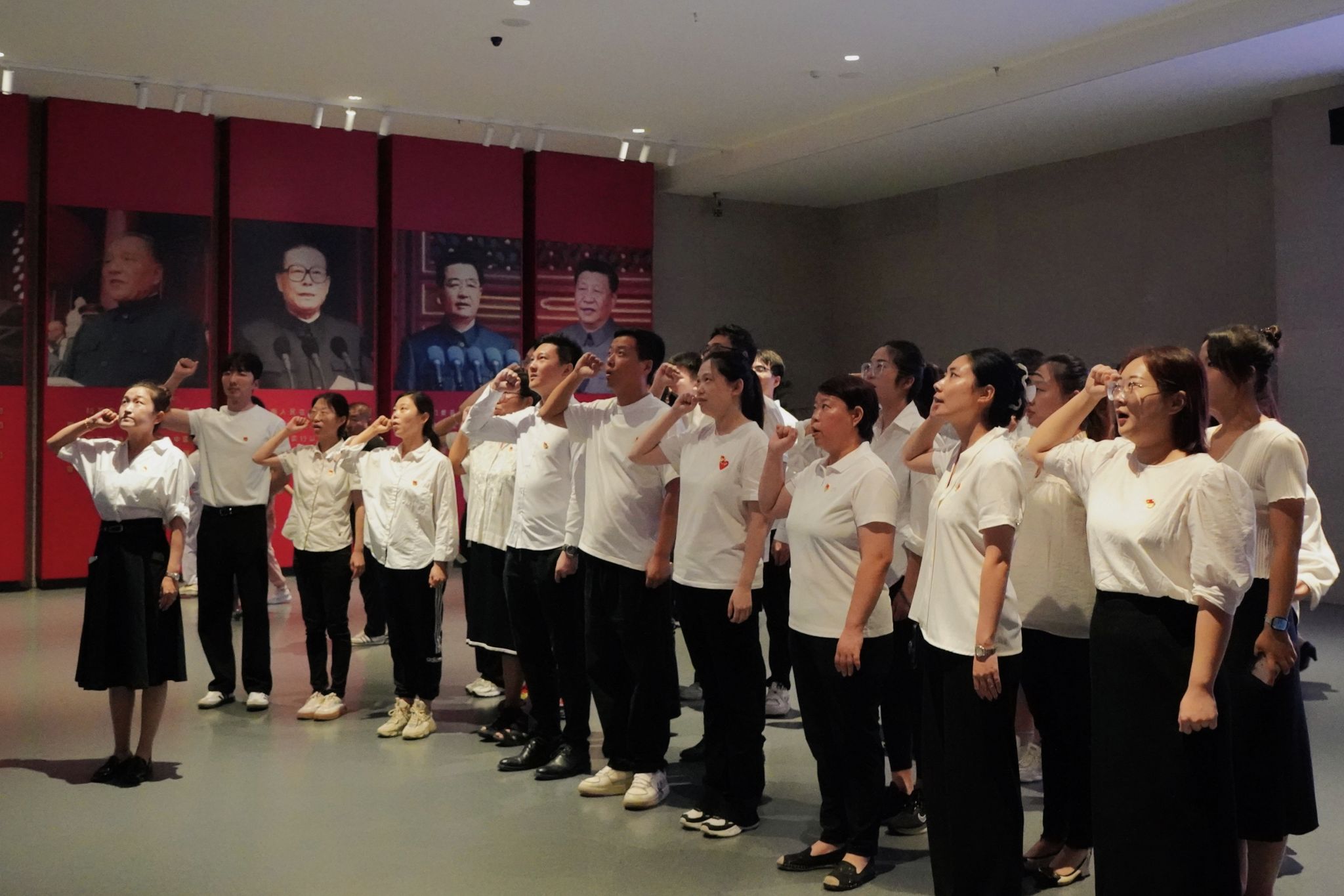 随后,全体党员在吕向楠的带领下,面对鲜红的党旗,重温了入党誓词。大家紧握右拳,铿锵有力的誓言回荡在展厅内,表达了大家对党的忠诚和对伟大事业的坚定信念。