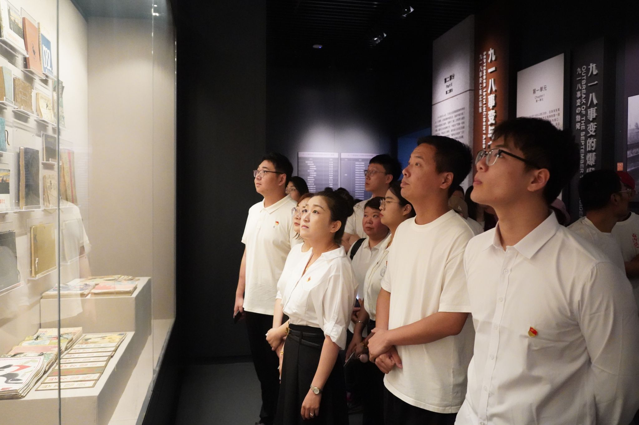 步入“九·一八”历史博物馆,雨声与外界隔绝,只留下馆内沉重的历史回响。师生党员在讲解员的引导下,通过丰富的历史文物、珍贵的图片资料以及生动的多媒体展示,详细了解了日本帝国主义发动九一八事变、侵占中国东北的侵略罪行,以及中国人民不屈不挠的抗日斗争历程。