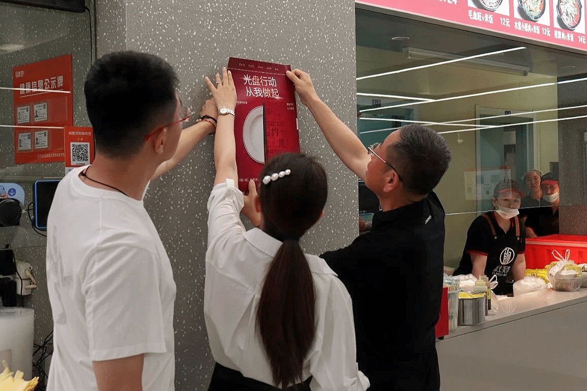 张涛与全体党员深入食堂各区域,将“珍惜粮食,拒绝浪费”、“按需取餐,光盘光荣”、“一粥一饭,当思来之不易”等醒目标语,张贴在取餐窗口、餐具回收处等师生就餐必经的醒目位置,让节约提醒抬眼可见、触手可及,使食堂成为弘扬节俭美德、传播文明风尚的生动课堂。