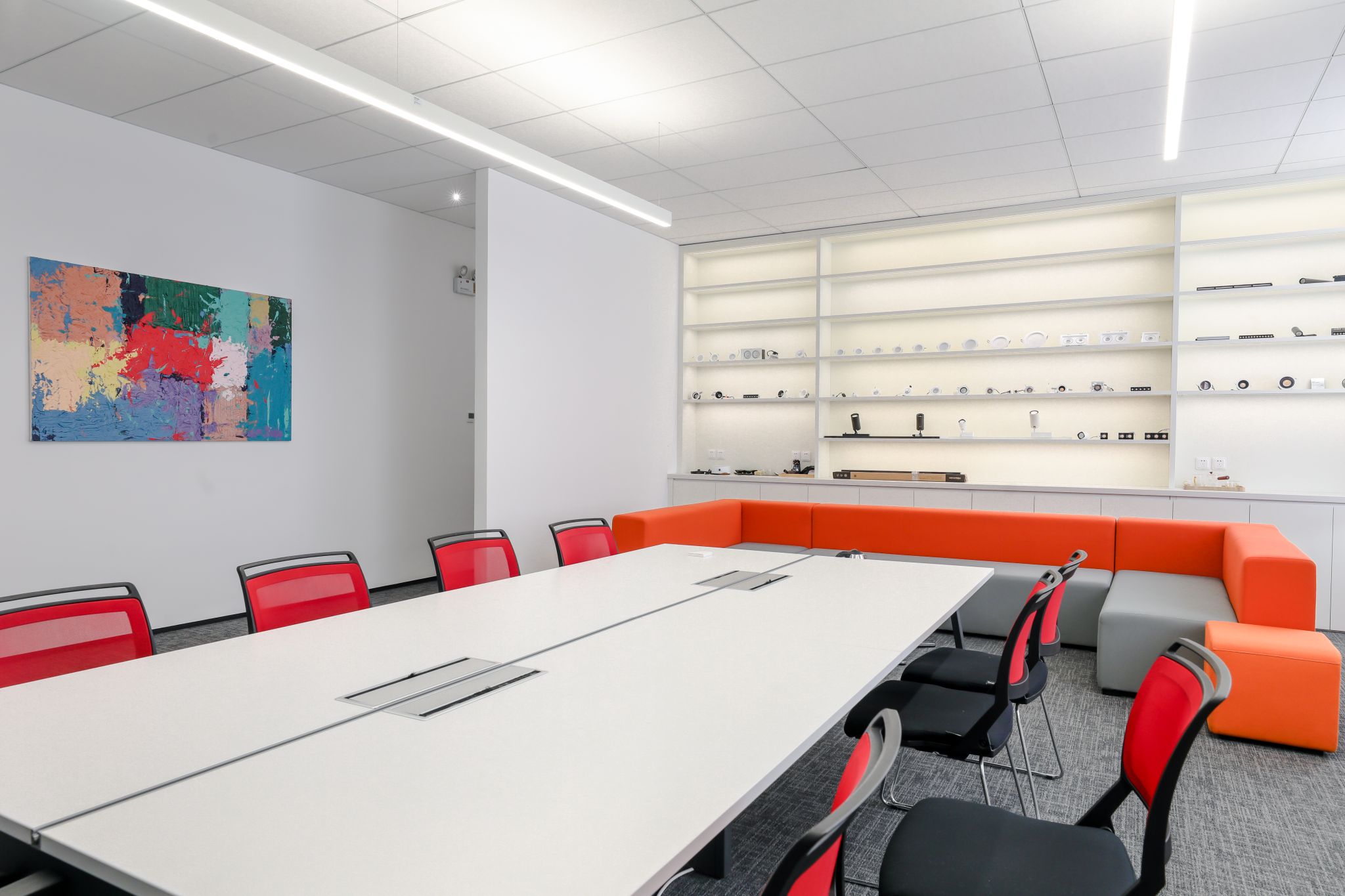 照明设计实验室84平米,用于满足对教学环节中各种灯具的照度、强度测量。照度计用于测量物体被照明的程度,即物体表面所得到的光通量与被照面积之比。积分球用来测量样品灯具的光通量。灯具样品用来进行灯具样式、种类的实物展示。
